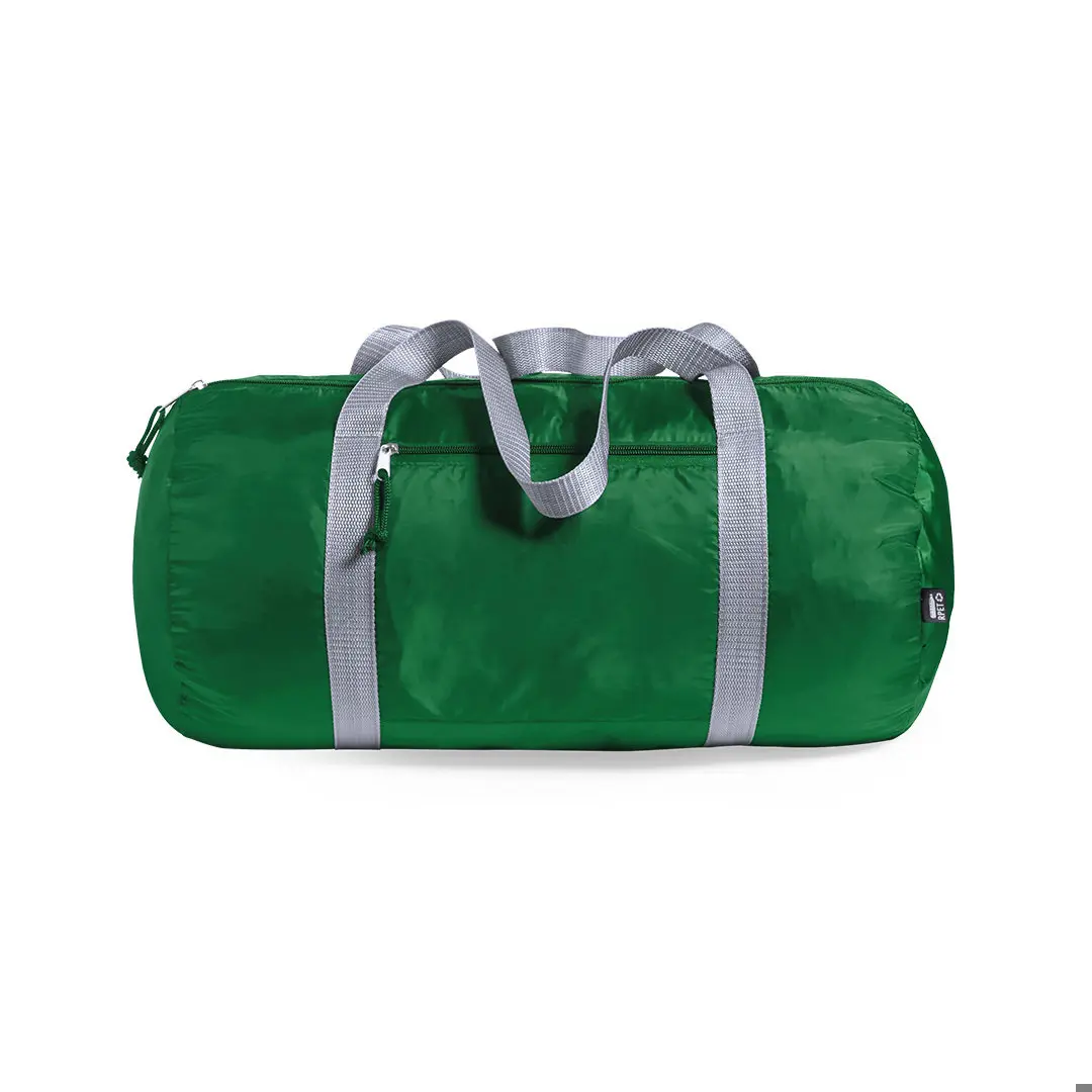 Bossa multiusos en suau polièster 290T RPET, elaborat a partir de plàstic reciclat, per així fomentar la reutilització de residus plàstics i ajudar a la sostenibilitat del planeta. En disseny desenfadat bicolor retro, amb butxaca principal i frontal amb tancaments de cremallera i tiradors amb cordes. Resistents nanses de niló en contrast al voltant del cos en color gris. Disponible en variada gamma de colors, amb distintiu RPET amb etiqueta.