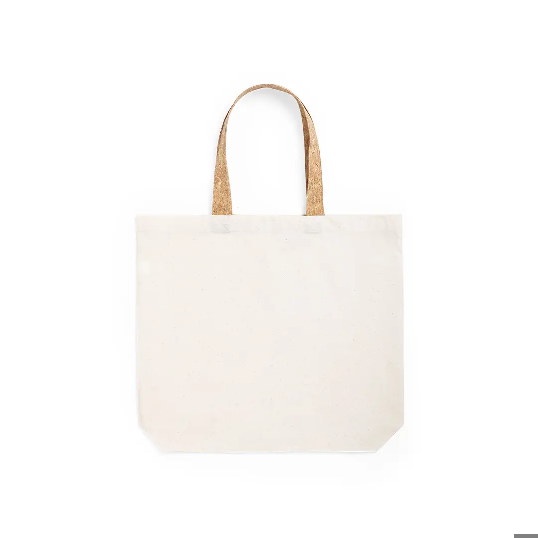 Bossa de línia nature en resistent cotó de 180g/m2 i originals nanses en suro natural de 53cm reforçades. Acabat cosit i resistència fins a 8kg de pes.