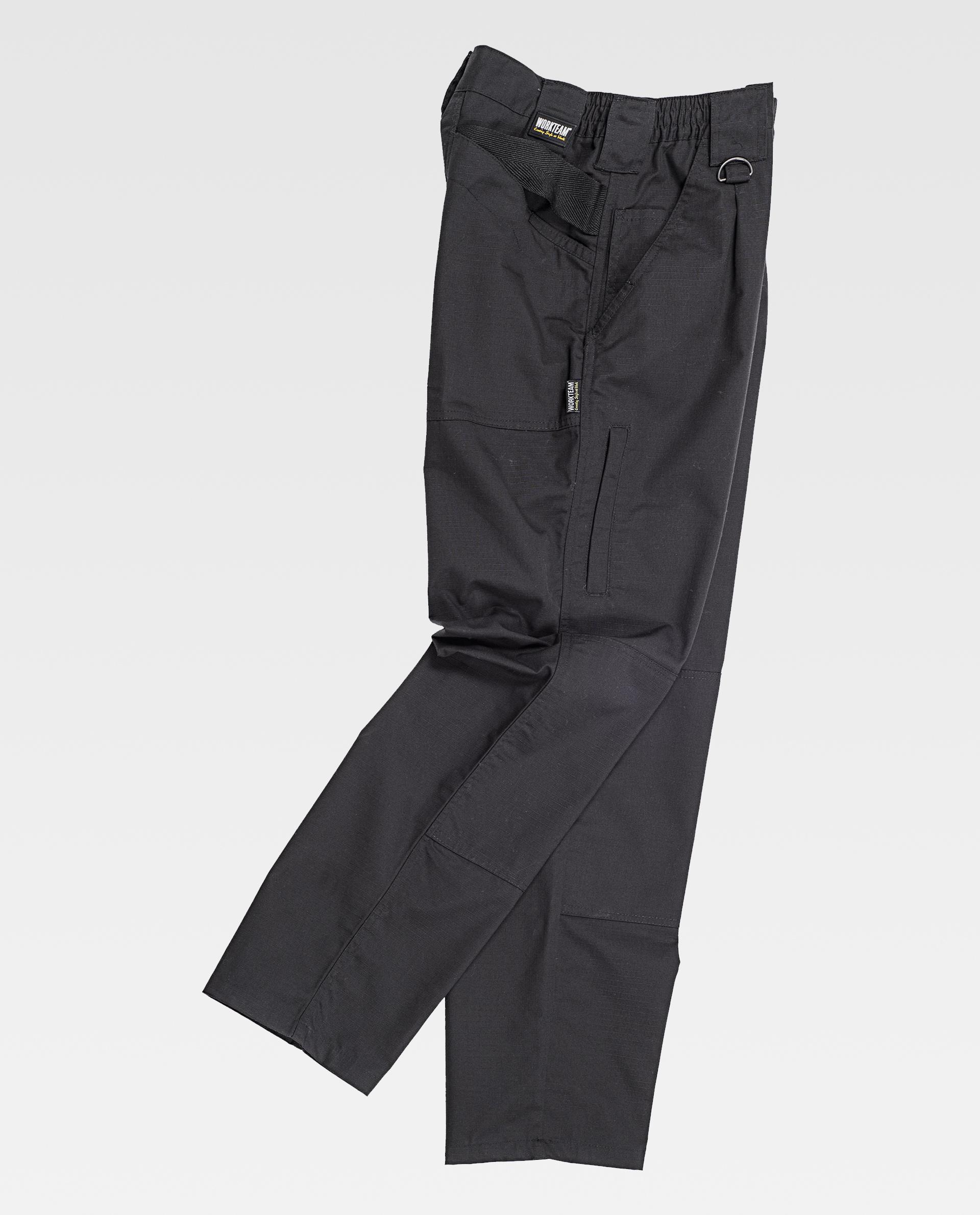 Pantalons de teixit Ripstop amb reforços. Dues bosses d'obertura inclinada als costats amb butxaca rellotger, dues bosses laterals interiors amb tancament de cremallera de metall. Dues bosses al reforç de la culera amb velcro i dues bosses interiors de plastó. Penjadors de cinta teixida negra. Genolleres i culera reforçades. Elàstic als laterals de la cintura. Travetes amples. Argolla metàl·lica. Tancament de claudàtor i botó interior, bragueta de cremallera de metall. Pantalons de teixit Ripstop amb reforços. Dues bosses d'obertura inclinada als costats amb butxaca rellotger, dues bosses laterals interiors amb tancament de cremallera de metall. Dues bosses al reforç de la culera amb velcro i dues bosses interiors de plastó. Penjadors de cinta teixida negra. Genolleres i culera reforçades. Elàstic als laterals de la cintura. Travetes amples. Argolla metàl·lica. Tancament de claudàtor i botó interior, bragueta de cremallera de metall.