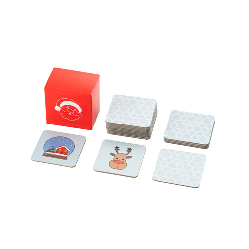 Joc de memòria de 20 peces amb figures nadalenques, lleuger i fàcil de portar. La caixa està personalitzada i serveix per desar el joc. Peces: 50 x 50 x 1.5 mm | Caixa: 56 x 54 x 35 mm
