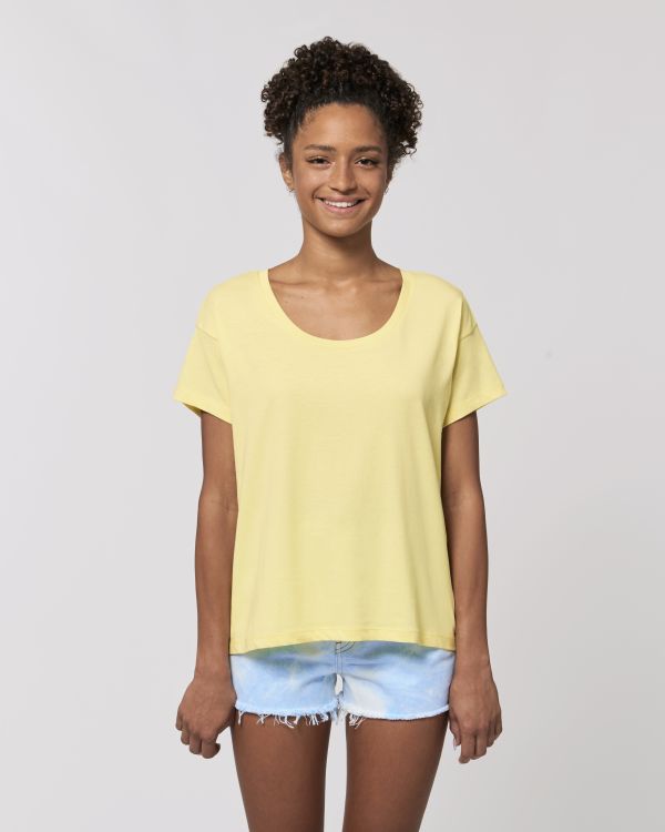 La samarreta de coll rodó per a ella. Tall solt, Coll rodó, Short Sleeve, Punt de mallot senzill. Màniga ranglán