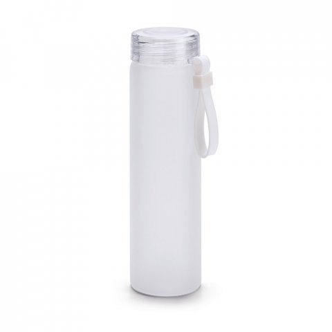 Ampolla de criustal borosilicado amb tap de rosca en PP. Aquesta ampolla té un acabat degradat mat i una nansa de silicona. Té una capacitat de 470 ml i es subministra en una caixa de cartró.